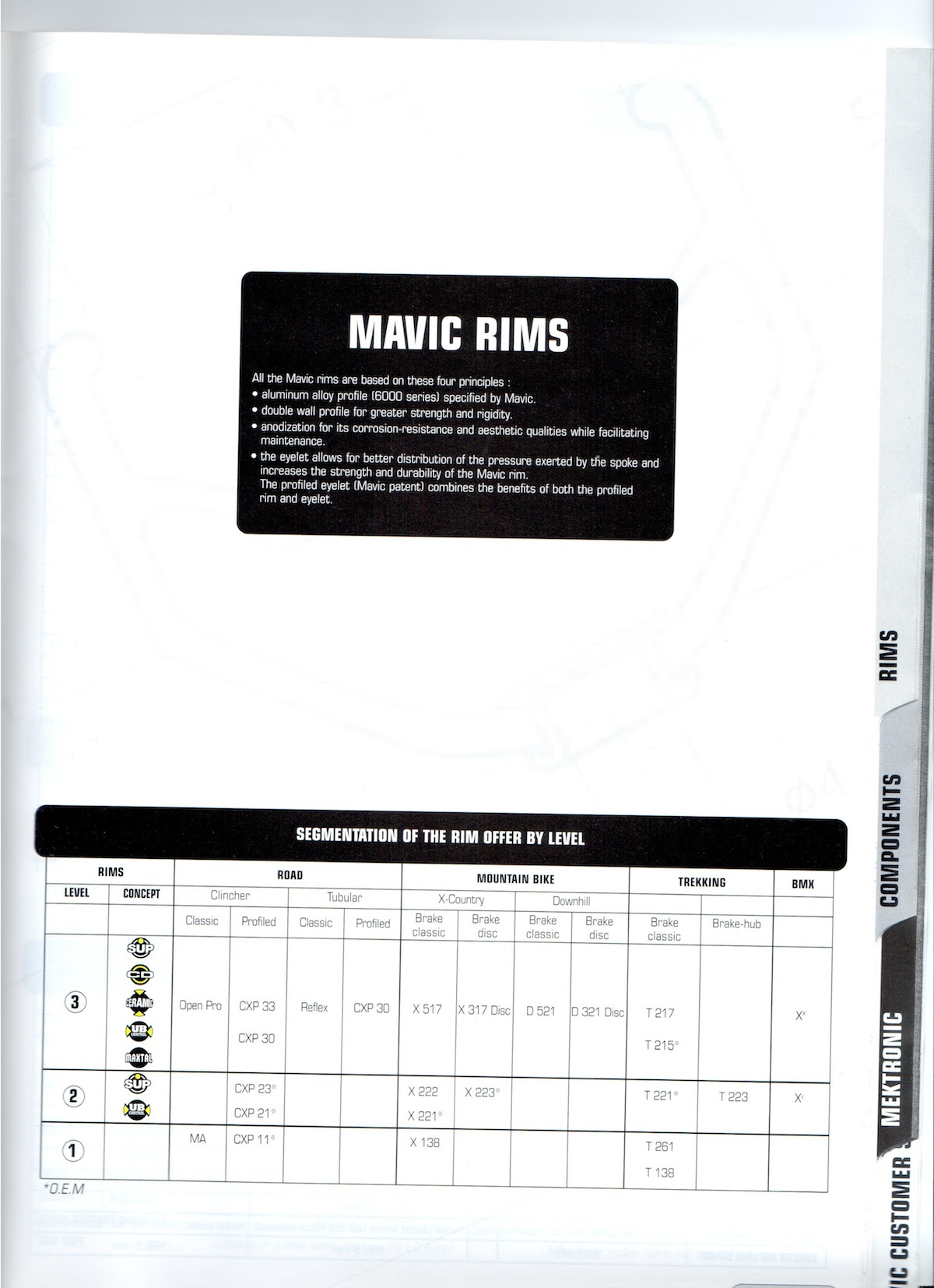 Hopefully, my confusion (and yours, should you have any) will end along with 2011. From Mavic's 1999 catalog, here are the CXP catalog pages for the family members that existed at the time, along with profile and extrusion shots for each of them. Let's start with the highest number and work our way down.